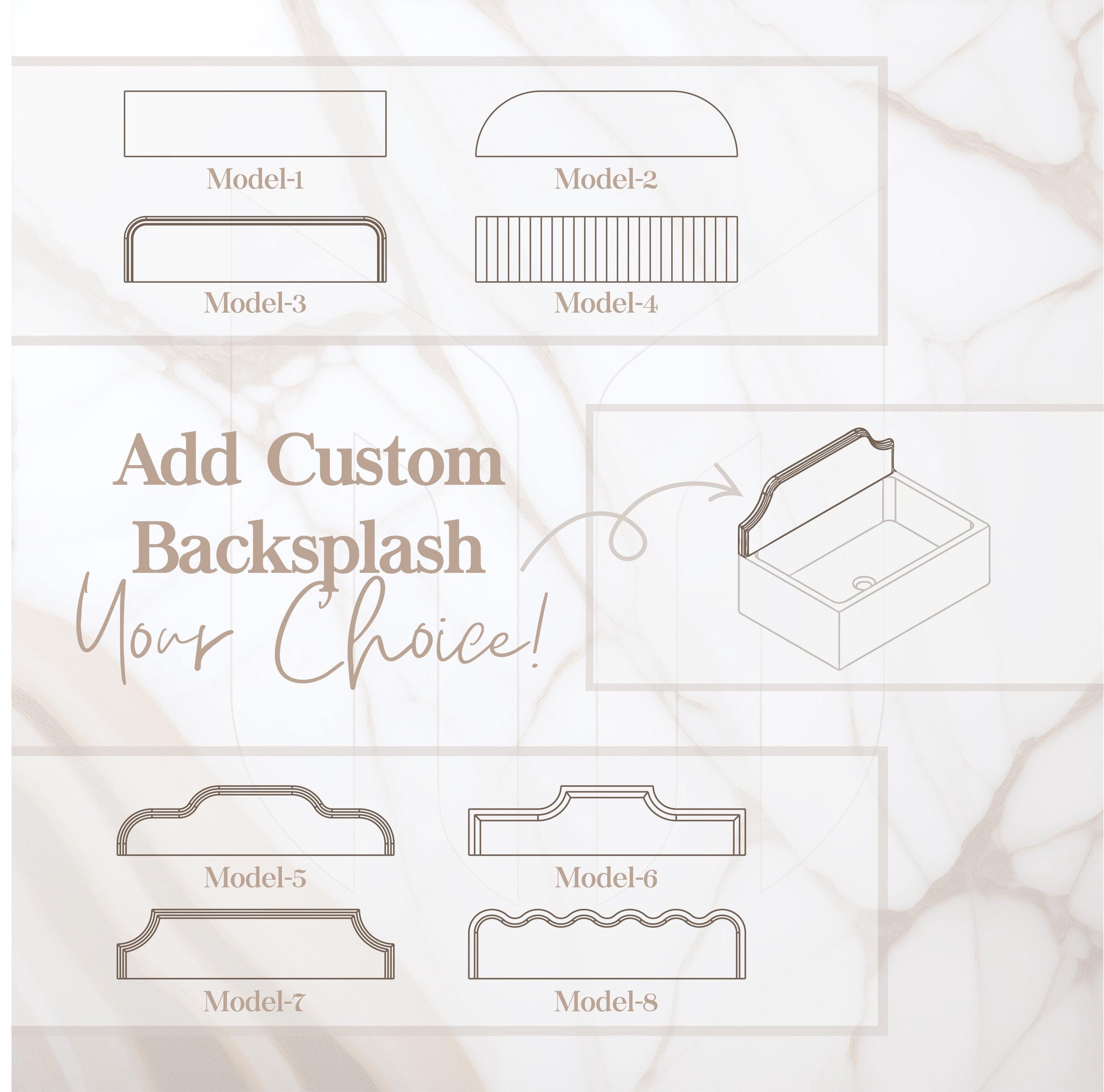 | Customizable Options | Stone, Dimensions, Finish, Drain Cover, Backsplash |